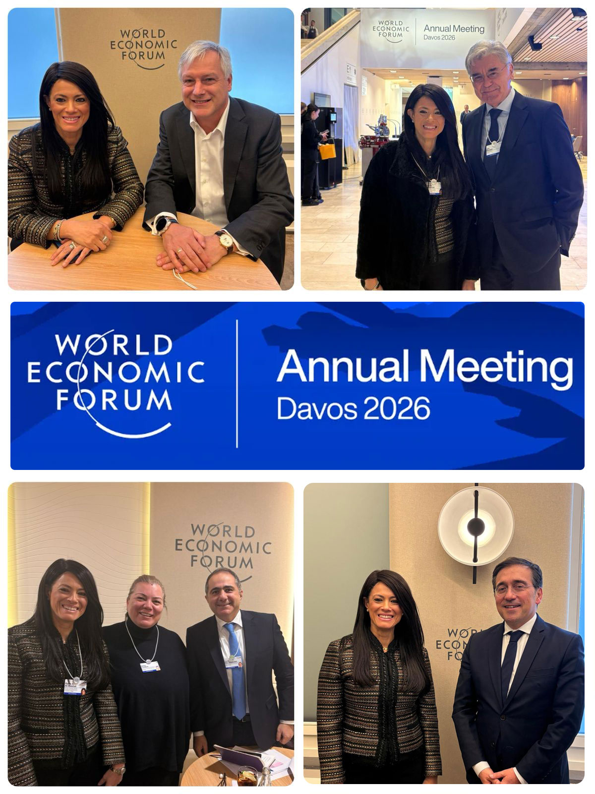 أجرت الدكتورة رانيا المشاط، وزيرة التخطيط والتنمية الاقتصادية والتعاون الدولي، عددًا من اللقاءات الثنائية المهمة في ختام مشاركتها في فعاليات الاجتماع السنوي الـ56 للمنتدى الاقتصادي العالمي المنعقد في مدينة دافوس بجمهورية سويسرا خلال الفترة من 19 إلى 23 يناير 2026، تحت شعار «روح الحوار»، بمشاركة أبرز القادة الحكوميين بمختلف دول العالم، وكبار المسئولين التنفيذيين من مؤسسات الأعمال الدولية، وممثلي المجتمع المدني والمؤسسات الدولية، حيث تناولت اللقاءات الثنائية التي عقدتها الوزيرة جهود تعزيز التعاون الاقتصادي والاستثماري، وسُبل دفع العلاقات مع شركاء التنمية في مختلف القطاعات الاستراتيجية.
