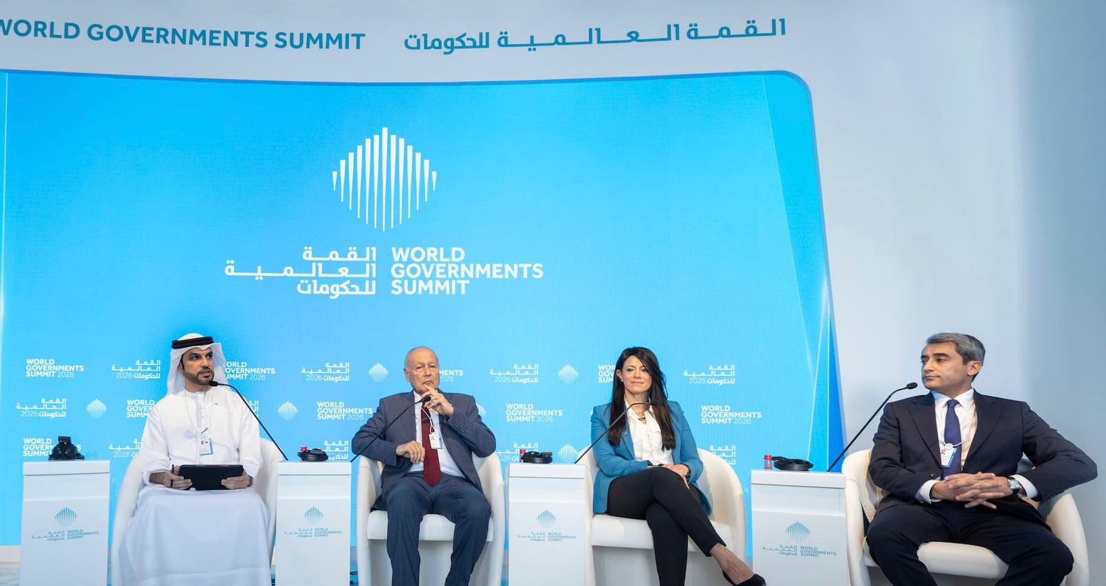 During the World Governments Summit..Alongside Secretary-General of the League of Arab States and Chief of Performance and Government Excellence at the UAE Prime Minister’s Office: Minister of Planning, Economic Development and International Cooperation Participates in a Panel Session “What Does It Take for Leadership to Transform Excellence into Sustainable Impact”